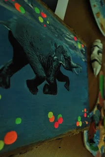 So I gave you a sneak peak yesterday of what I was going to paint today, so here it is. I enjoyed doing this so much that it is definitely stemming to a series. Animals you don't expect to be in the water, immersing themselves in the water (with neon dots of course - been really into neon). Let me know what you think and if you have any ideas on what animals to paint, feel free to email me (I've been working on a list - got about 12 animals so far).
