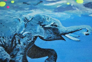 Speaking of elephants, I was somewhat nauseated painting this piece today because I just found out that after I supported the movie Water for Elephants (as in went to go see it because I loved the book) that the elephant was brutally electrocuted as part of training. A video of the footage leaked after the film came out. It's so unfortunate that people are such a** holes with animals. Anyone interested in going to see the movie Zookeeper, don't support it. It's the same training company. Disgusted.