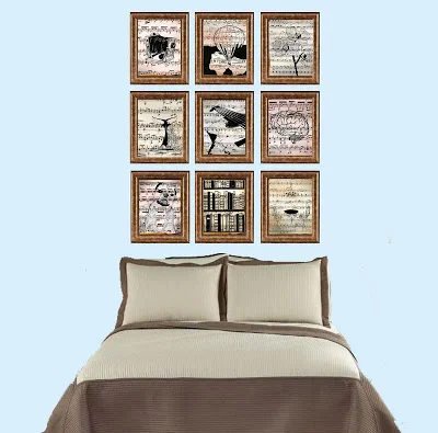 This weekend was spent rearranging the bedroom in the apartment (I knew the itch would come soon enough even though I have only been here a few months) and it looks absolutely beautiful. Just a few more finishing touches before this apartment is finished! (Ugh who wants to think about moving somewhere new in a year?! I love this apartment). I've been working on a project for the bedroom wall incorporating a lot of artwork I have seen recently on top old dictionary pages and sheet music -- something I've been wanted to try. I wanted to do a gallery/collage style framing and this is what I came up with. These frames aren't exactly what we picked out, but all I could find that is similar. Ours are a bit more dramatic and more gold. I cannot wait for this to be finished. All drawings done by me and all the sheet music I scanned in and 'vintaged' up.